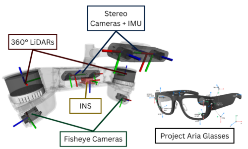 Data collection was performed using a custom sensorised backpack and Project Aria smart glasses, providing full 360° sensing around the cyclist.